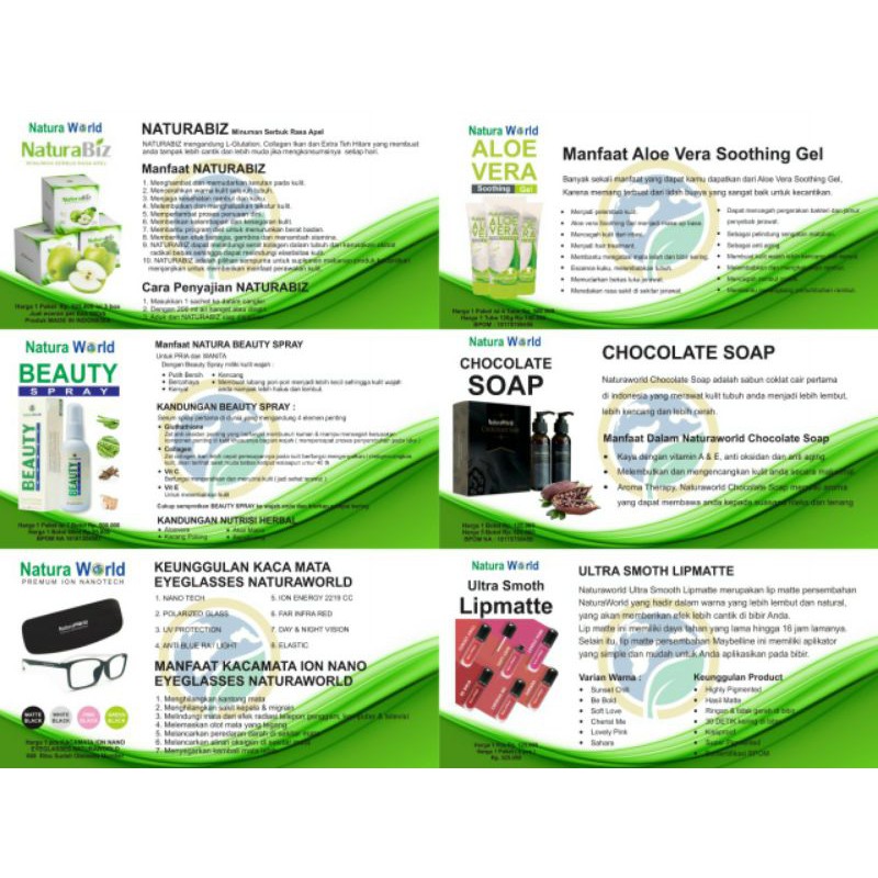 Natura adalah produk kecantikan dengan 100 bahan alami. Harga Ecer Rp. Jual spanduk natura world dengan harga Rp50000 dari toko online pises Kab.