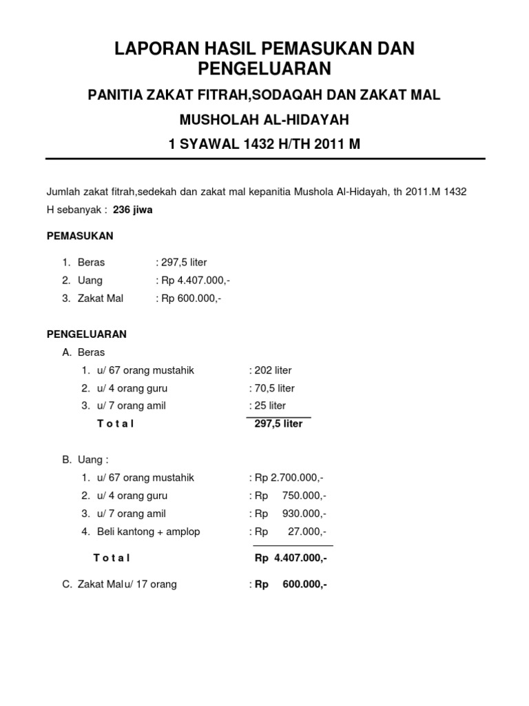 Contoh Laporan Zakat Fitrah Masjid Nusagates