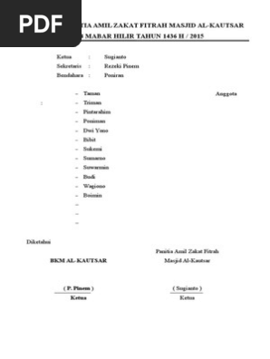 Susunan Panitia Amil Zakat Fitrah Masjid Al Pdf