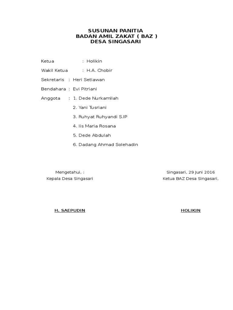 57 rows 7 PAZ Nurul Hikam adalah Panitia Amil Zakat infak dan sedekah yang. Kali ini sebelum melakukan rapat kepanitiaan untuk perencanaan kegiatan maka perlu dibentuk susunan Panitia 17 Agustus untuk panitia. Nabi shallallahu alaihi wa sallam mewakilkan kepada abu hurairah radhiallahu anhu untuk menjaga zakat fitrah.